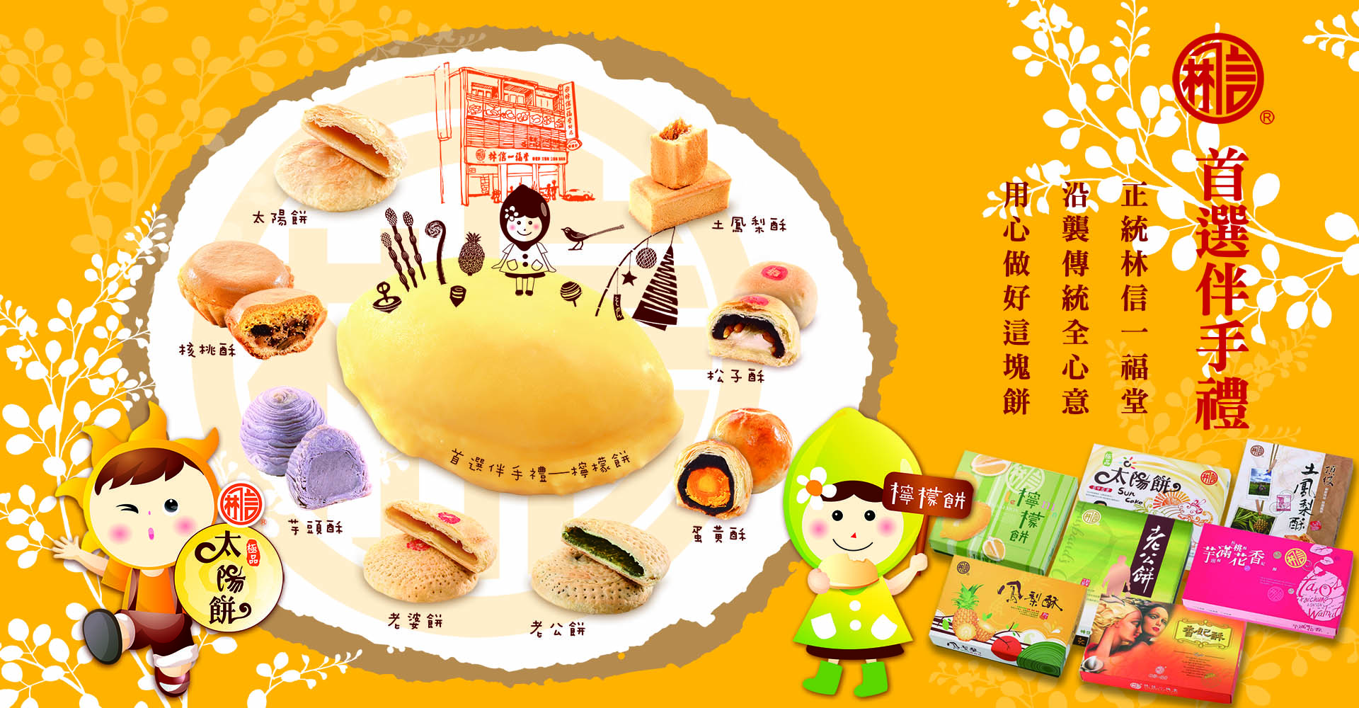 創始人林信一,大家都稱他阿信叔,傳承一福堂創始人的糕餅製作的手藝,與用心經營傳統糕餅業的精神,從開始到現在已經經營40年以上。 台中火車站前的復興店是創始店,之後開創遊覽車休息站模式經營,歷經大智店、草湖店、大竹店到現在的芬園店,隨後又增加環中路三段的經營據點, 一路走來都堅持要給顧客最好的產品品質,因此我們的店一直是旅遊業者帶客人來買台中名產的最佳選擇。